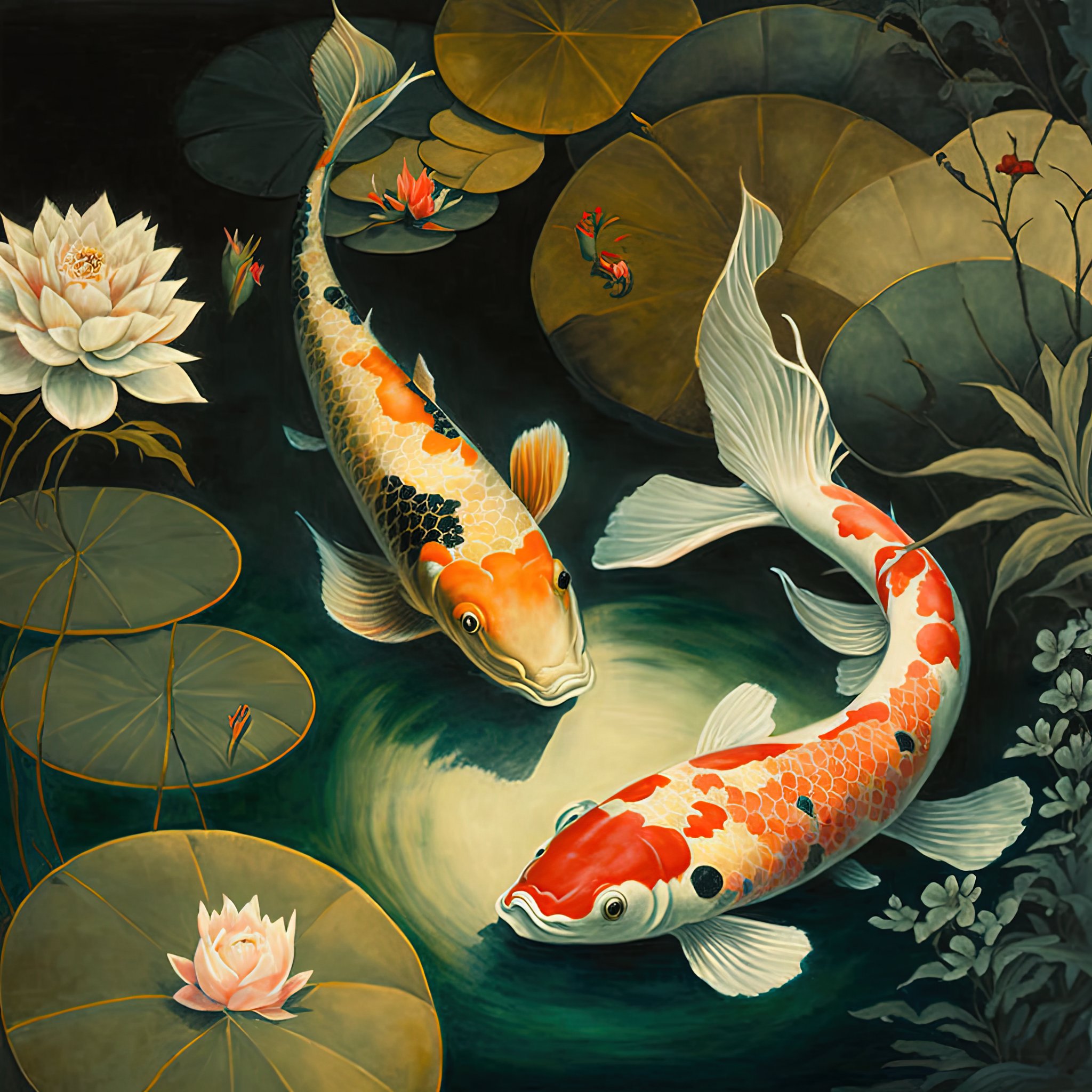 Vintage Japanese Koi Fish Pond Art Print Poster